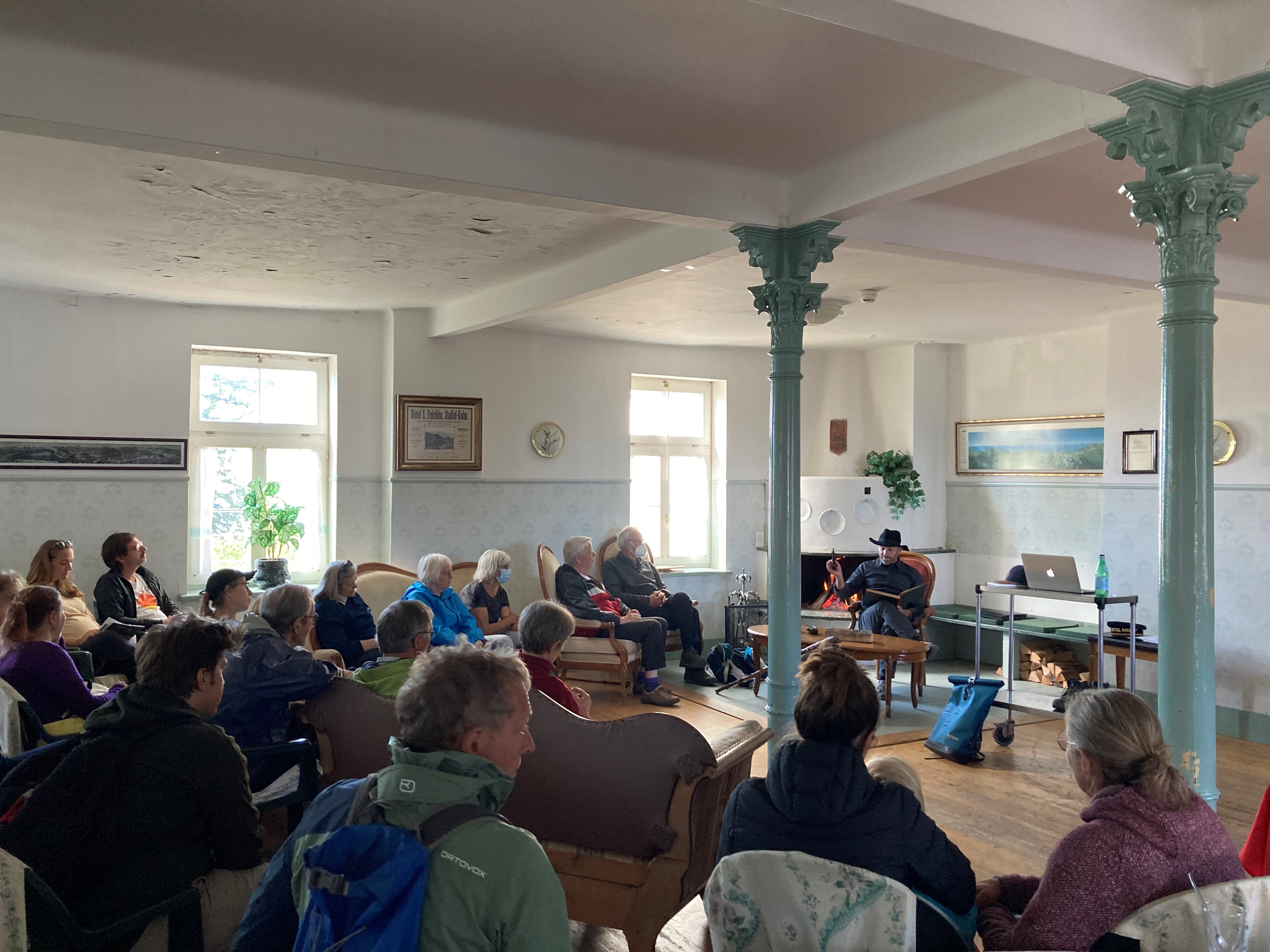 Trotz des verregneten Samstags waren viele Führungen gut besucht und es ergaben sich anregende und interessante Gespräche. Für eine behagliche Stimmung sorgte das kulinarische Angebot im Hotel Felchlin und das wärmende Kaminfeuer im historischen Hotel Saal.